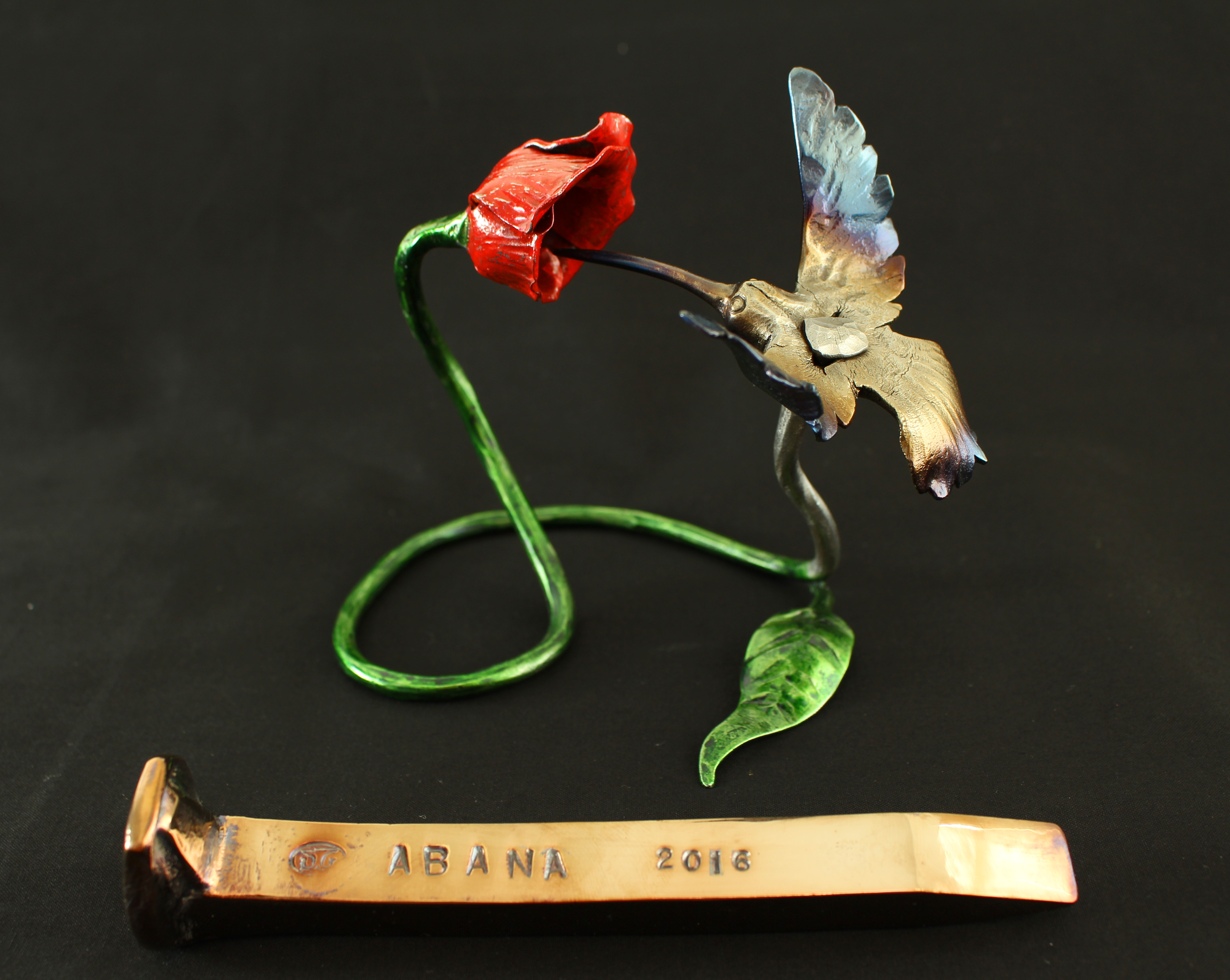 2016 ABANA Conference in Salt Lake City, Utah. I forged a hummingbird and flower out of one railroad spike.